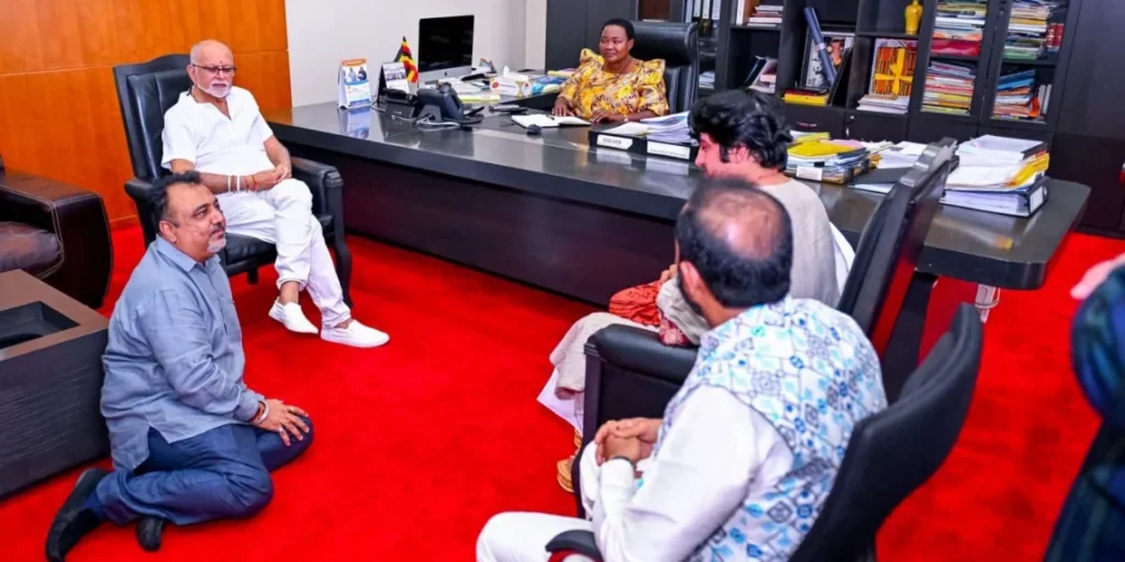 Uganda’s richest man, Dr. Sudhir Ruparelia, on Sunday accompanied Indian spiritual leader Shri Dhirendra Krishna Shastri, also known as Bageshwar Dham Sarkar, to meet Prime Minister Robinah Nabbanja at the Office of the Prime Minister.